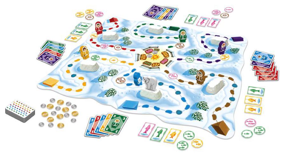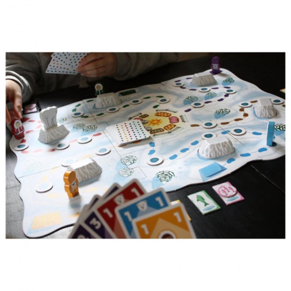 An icy race for the best catch! Move the adventurers along their paths and try to collect as many fish discs of the same kind as you can! The player who has the best total catch at the end of the game wins! Use a little bit of strategy and hope for the best to win at this adventure for the whole family!
